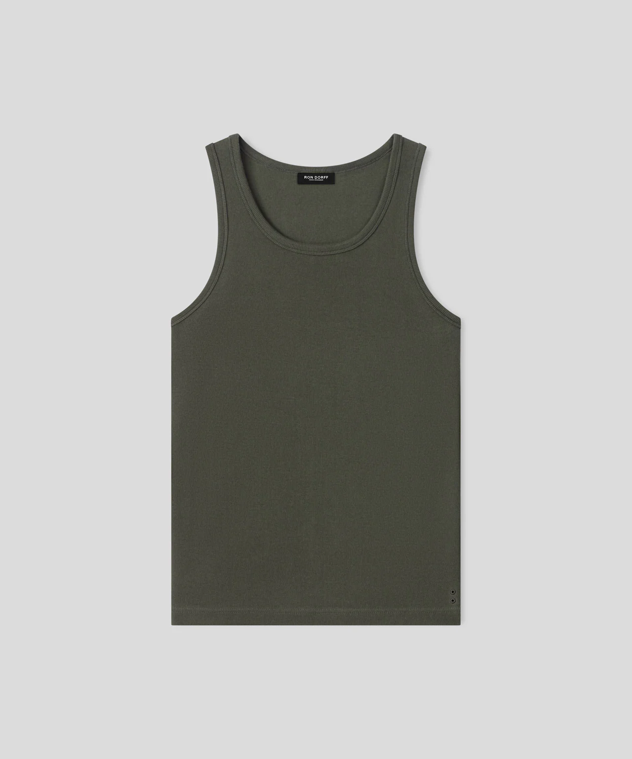 The new ribbed tank top is cut from a premium cotton blend with a hint of elastane for a close, comfortable fit. Designed with a classic rounded neckline and clean finishes, it can be worn on its own or layered. Two discrete embroidered RD eyelets tone on tone on the side. Prewashed for minimum shrinkage.