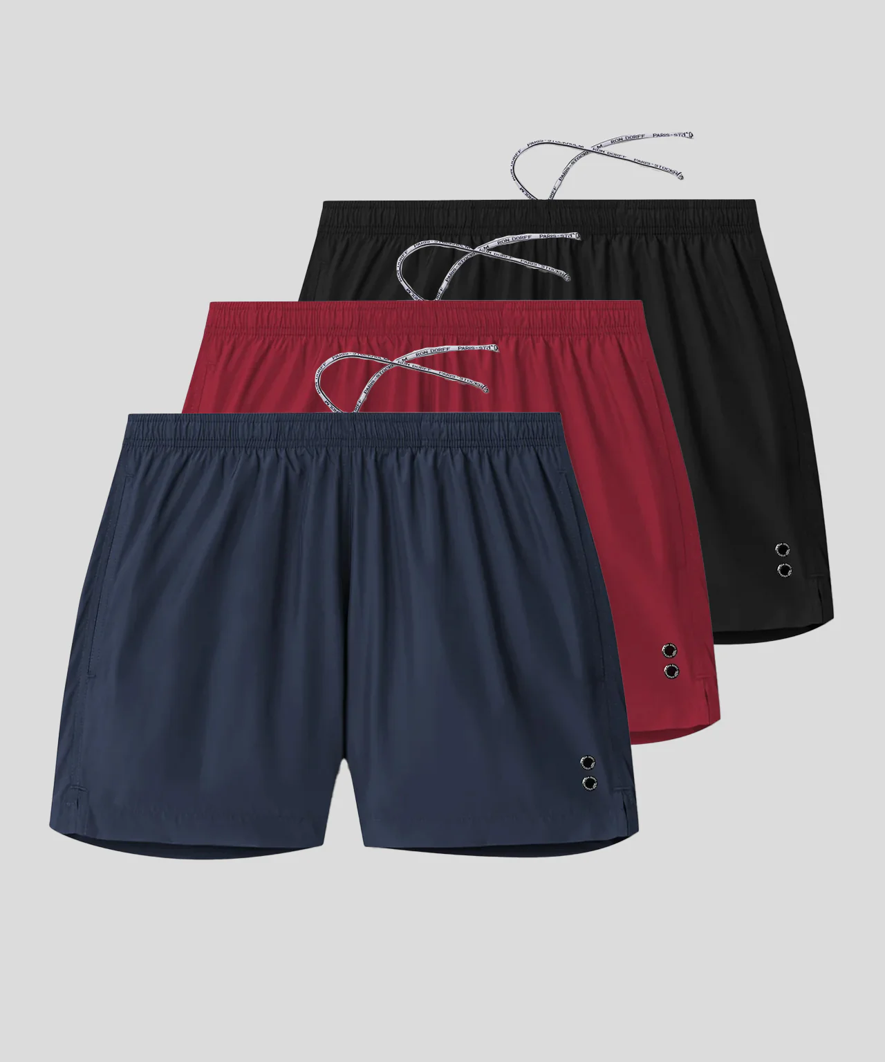 Introducing the new Holiday Swim Shorts Kit in time for the summer holidays. Compose your own kit of 3 Swim Shorts. The RD Swim Shorts inspired by the model worn around the Mediterranean in the early 80s. Upgraded in an Italian recycled, light-weight and quick-drying polyester offering UV and chlorine protection. Breathable micro-mesh lining. Tailored fit, short legs and side slits for an enhanced silhouette. Elastic waistband with adjustable drawstrings. Side pockets and interior key pocket. Featuring the double black-lacquered RD signature eyelets.