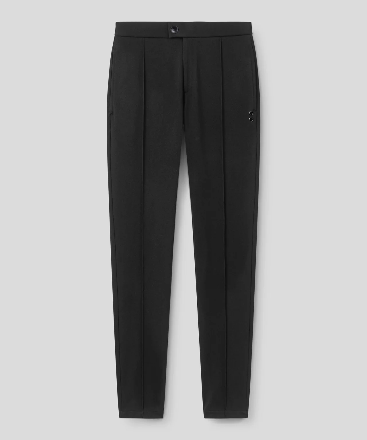 The pants version of the iconic RD Tennis Shorts. Designed with a slightly tapered fit and cut in a breathable stretch polyester with a hint of elastane. RON DORFF engraved button and two side pockets. Two back pockets. Featuring the two discrete black-lacquered RD eyelets on the side.