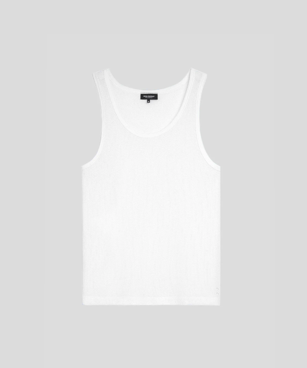 The classic underwear tank top in vintage-style cotton mesh, updated with a slightly tailored fit for use at home or out and about under a shirt. Two discrete embroidered RD eyelets tone on tone on the side. Prewashed for minimum shrinkage.